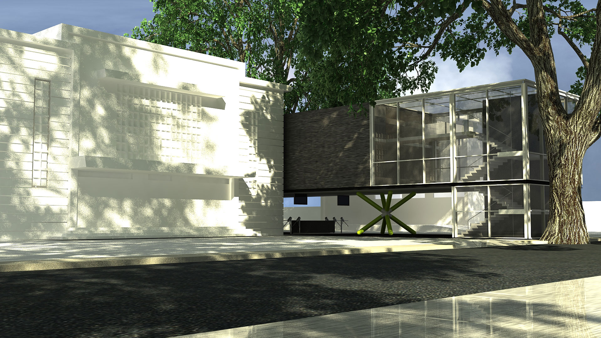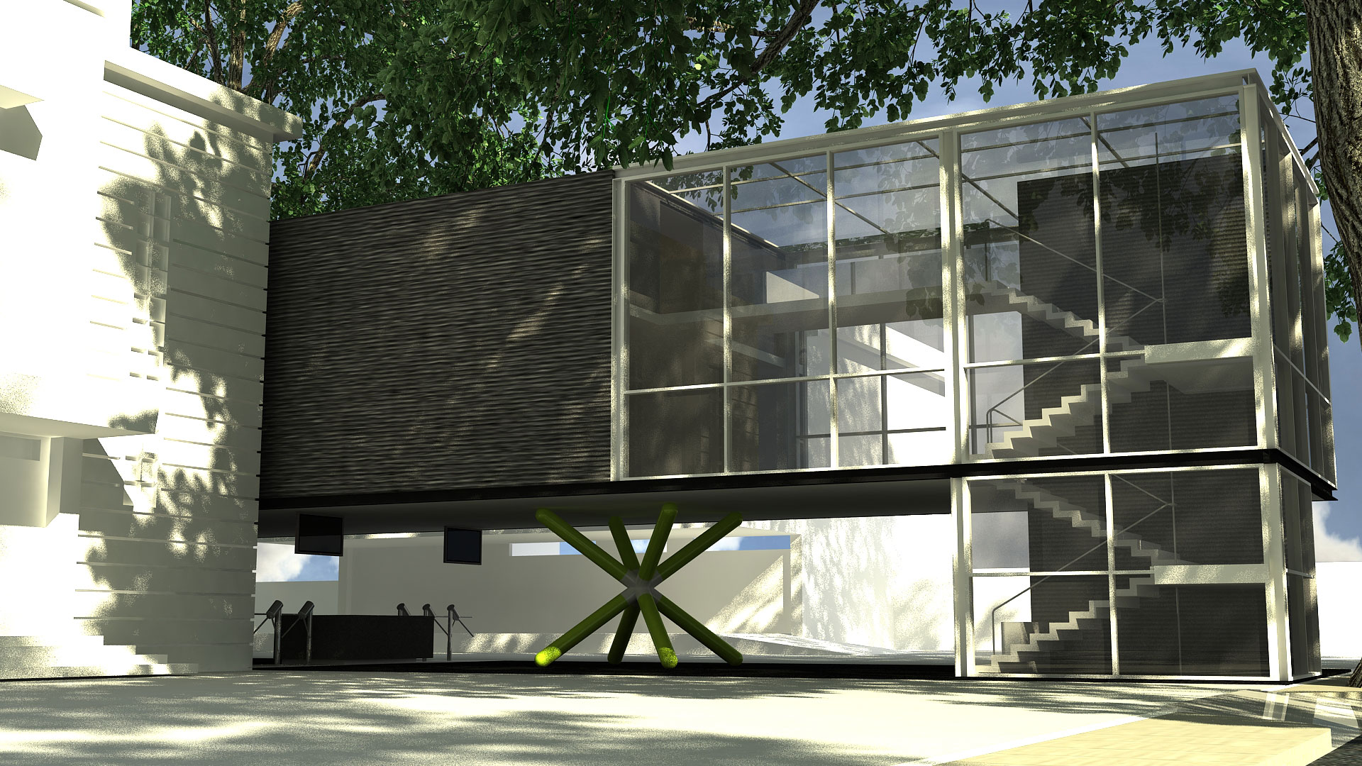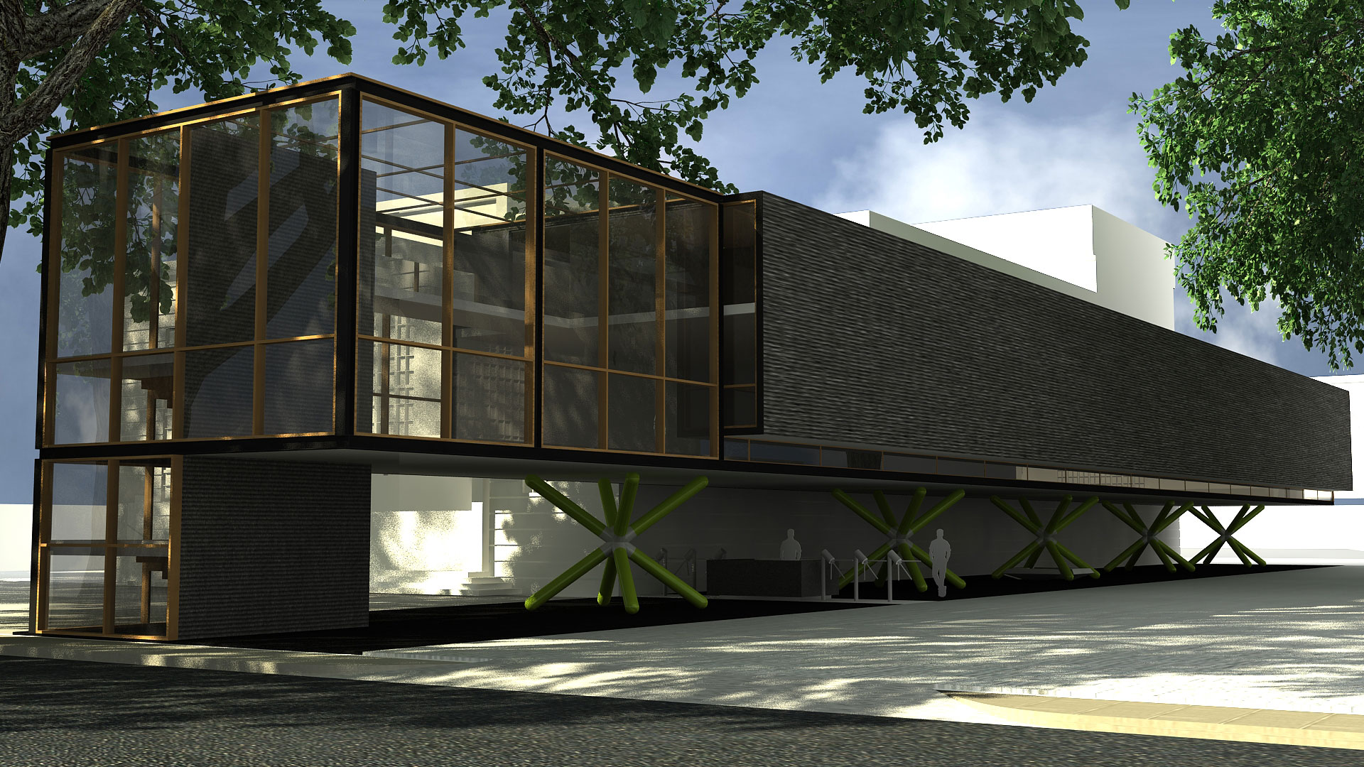 An industrial machine-like aesthetic was used for this two-storey museum for St. Bridget School in Batangas. The building's basic, straightforward form and layout is enlivened by the jackstone-shaped columns on the ground floor, which mirror the turnstiles as well. I-beams and GI sheets were the main materials used for the structure to save on cost.