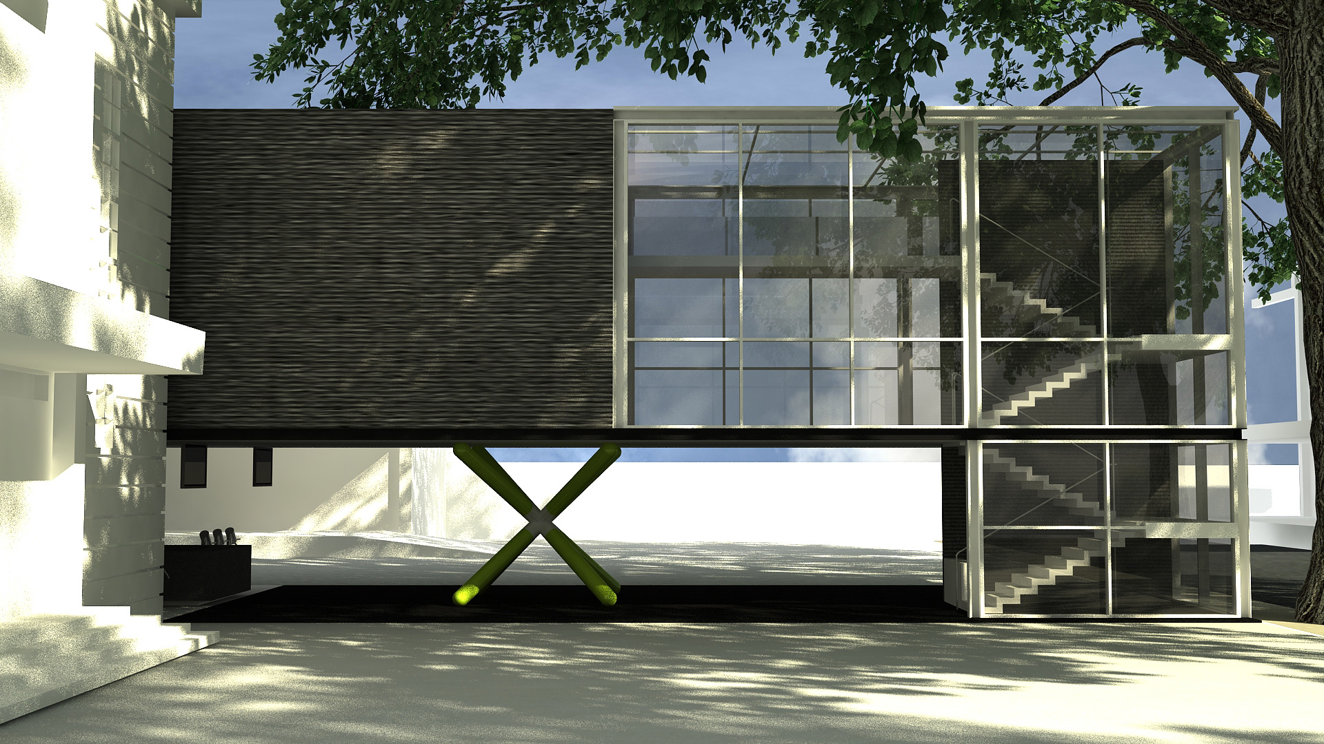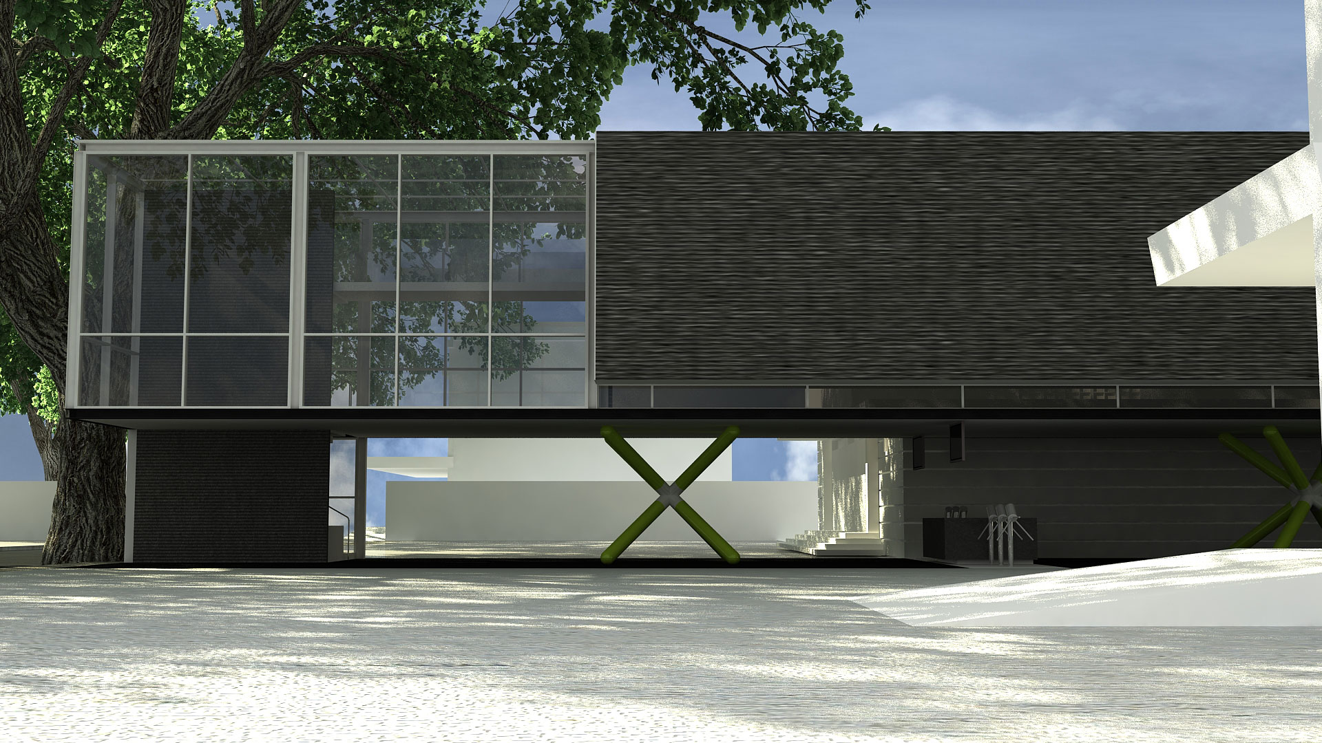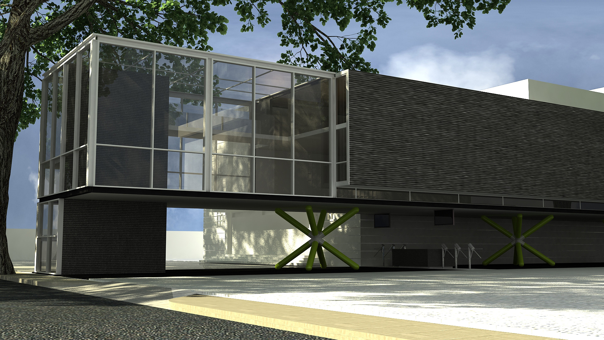 An industrial machine-like aesthetic was used for this two-storey museum for St. Bridget School in Batangas. The building's basic, straightforward form and layout is enlivened by the jackstone-shaped columns on the ground floor, which mirror the turnstiles as well. I-beams and GI sheets were the main materials used for the structure to save on cost.