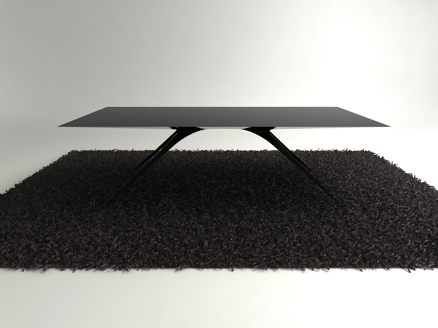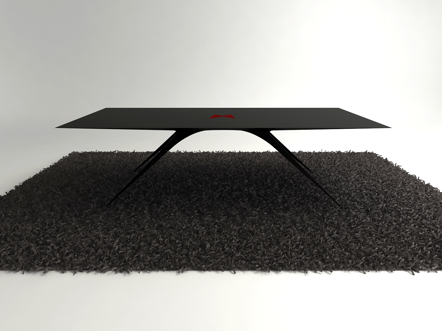 A steel table with a 3D-printed mesh topped with glass, inspired from the gnarly trees concealing witch's lairs in fairy tales. Another version, called Black Widow, has a solid black tabletop with a red spider outline at its center.